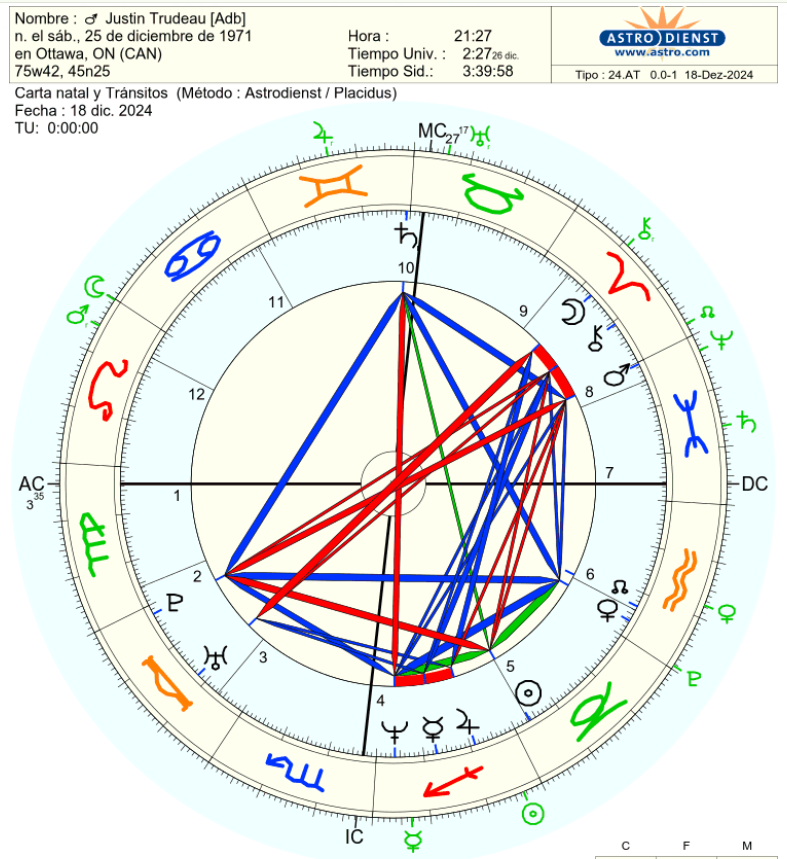 - Tensiones personales: Marte en oposición a Venus también sugiere que Trudeau podría experimentar un agotamiento emocional o físico debido a las constantes presiones políticas y demandas externas.