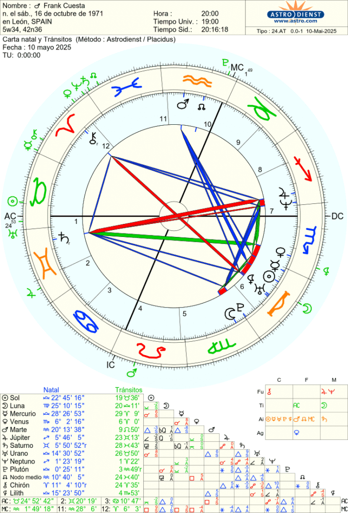 Como se puede ver, los tránsitos de Saturno y Neptuno han sido demoledores, el paso de Urano sobre el ASC ha acabado con la relación de Frank Cuesta y Yuyee, y la conjunciòn de Plutón sobre el MC ha dinamitado la credibilidad y la imagen pública de Frank Cuesta.